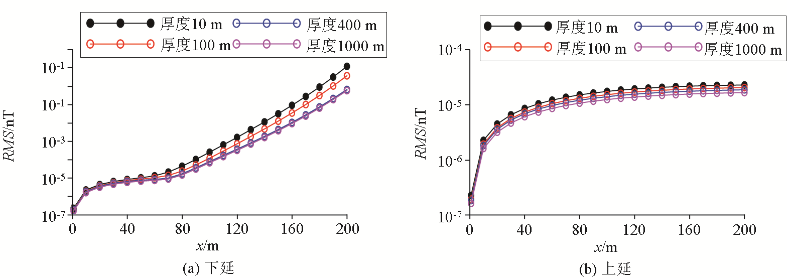 | Fig.11 The influences of different equivalent source thicknesses on modeling accuracy |