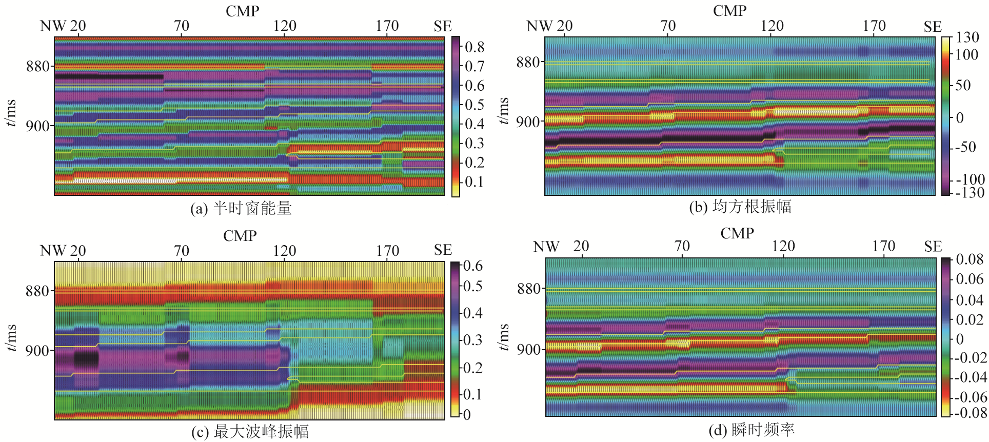 | 图2 地震正演剖面属性特征 |