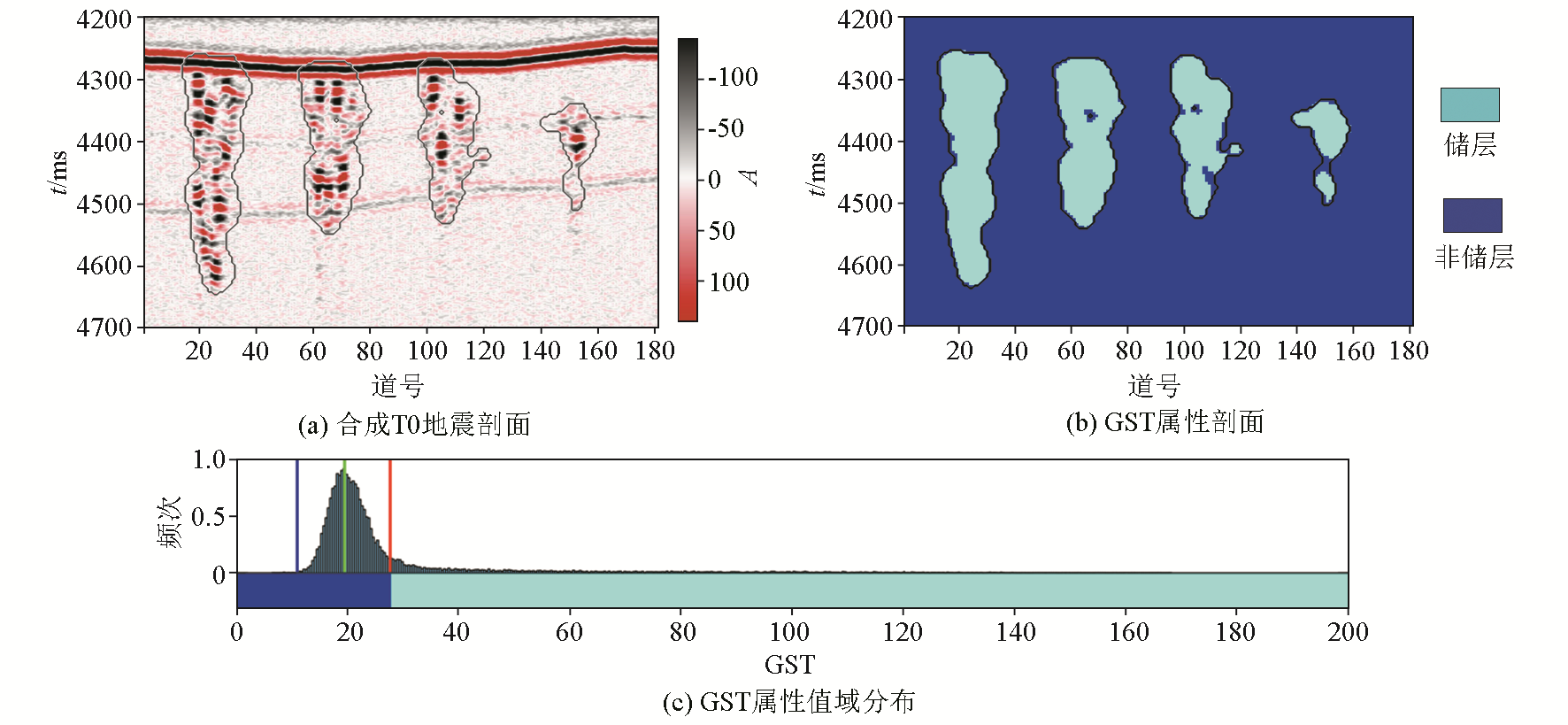 | Fig.6 Seismic profile for seismic forward model and GST attributes,S/N=10 |