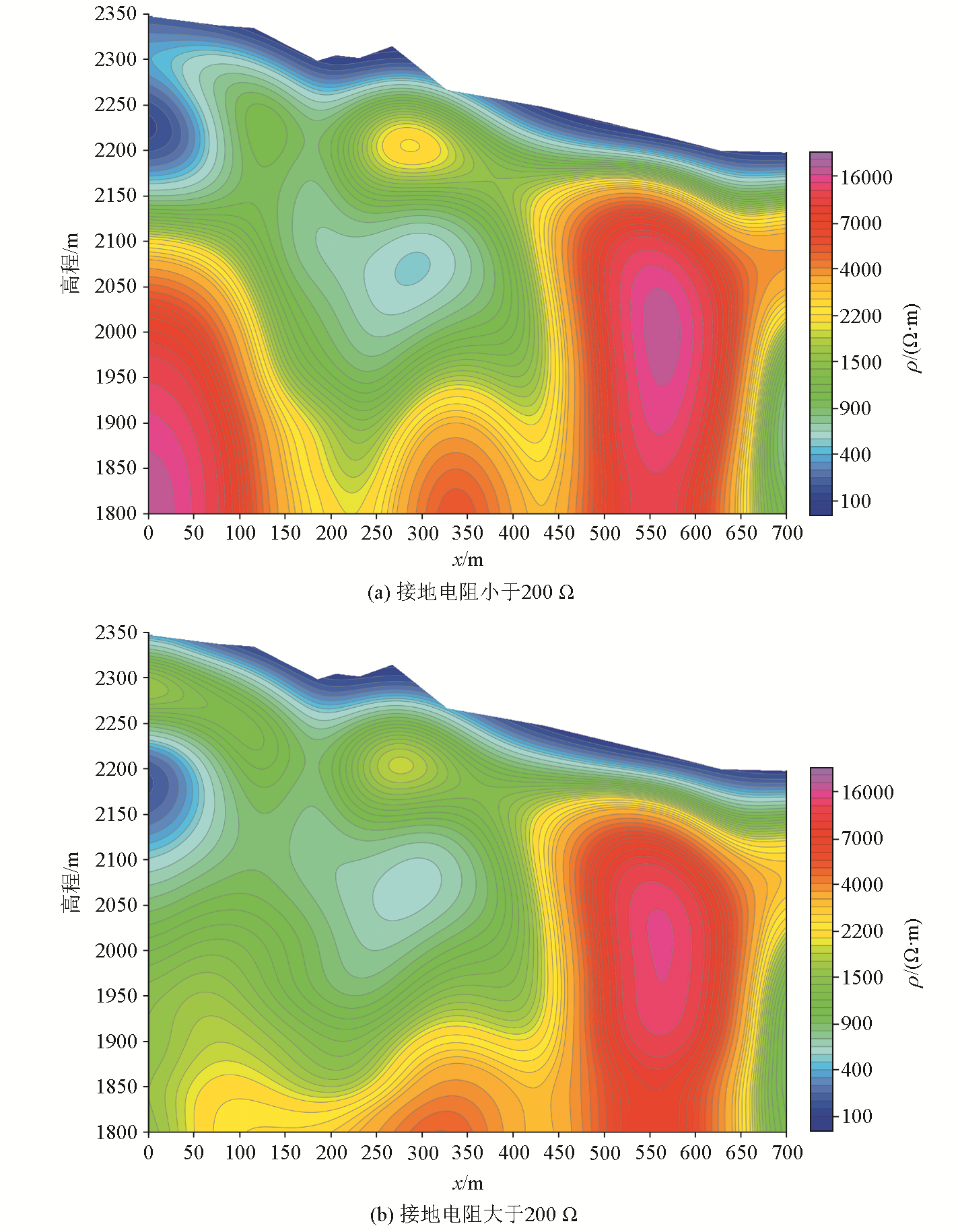 | 图10 云南福宜高速梁王山隧道勘察EH4数据二维反演结果剖面 |