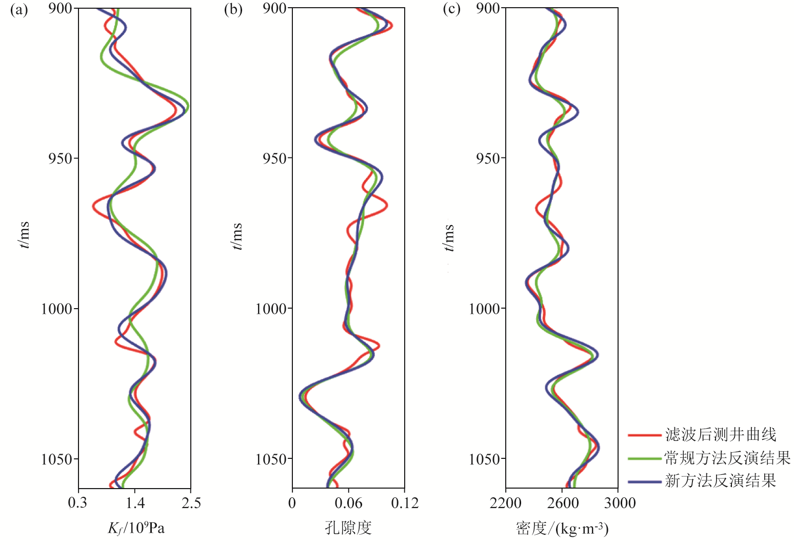 | 图11 不同反演方法下实际地震资料井旁道反演结果与滤波后测井曲线对比 |