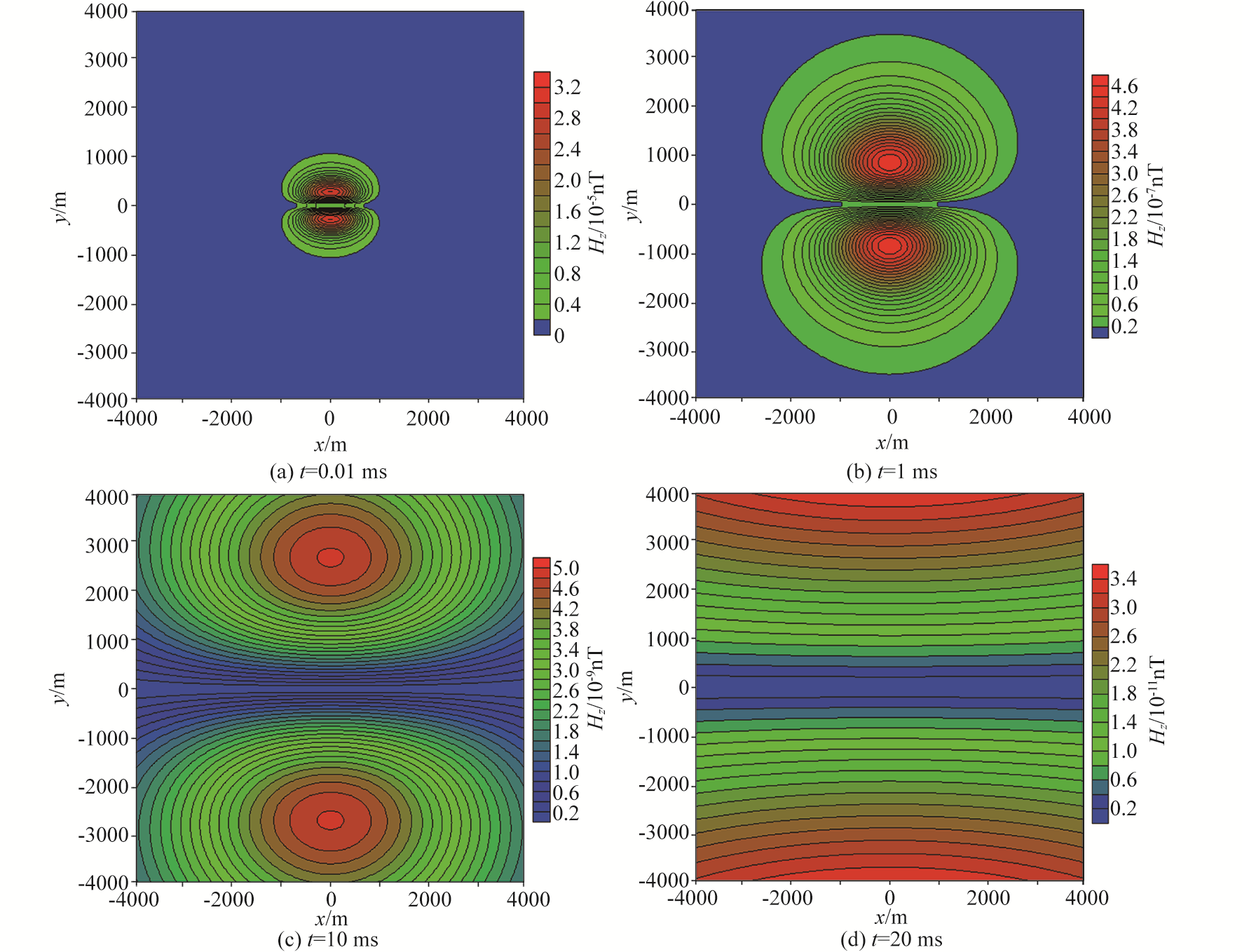 | Fig.4 Plane distribution of vertical magnetic field at different times |