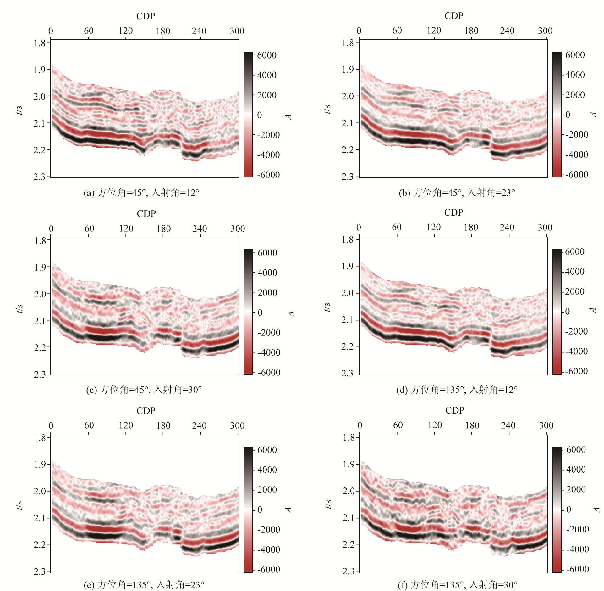 | 图13 实际裂缝型储层工区叠前方位地震剖面 |