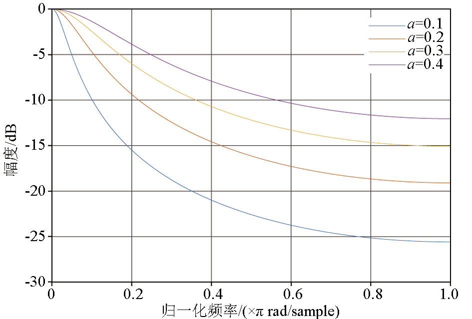 | 图9 不同a取值对应一阶低通IIR滤波器的幅频特性 |