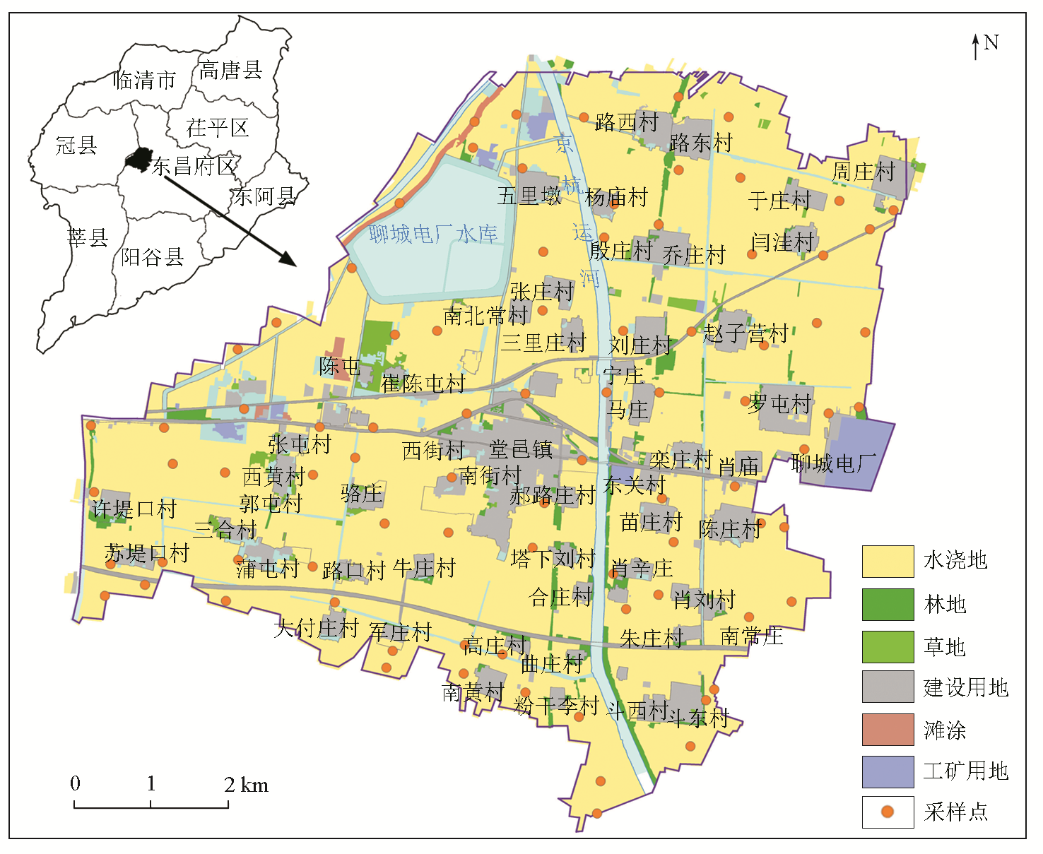 | Fig.1 Distribution of land types and sampling points in the study area |