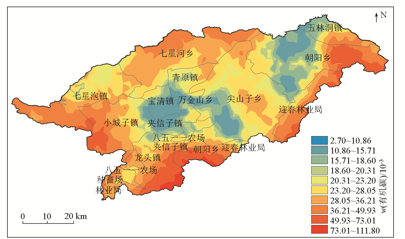| 图7 普通克里金法预测宝清县土壤有机碳空间分布 |