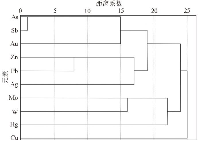 | 图4 松树南沟矿区土壤地球化学元素R型聚类分析谱系 |