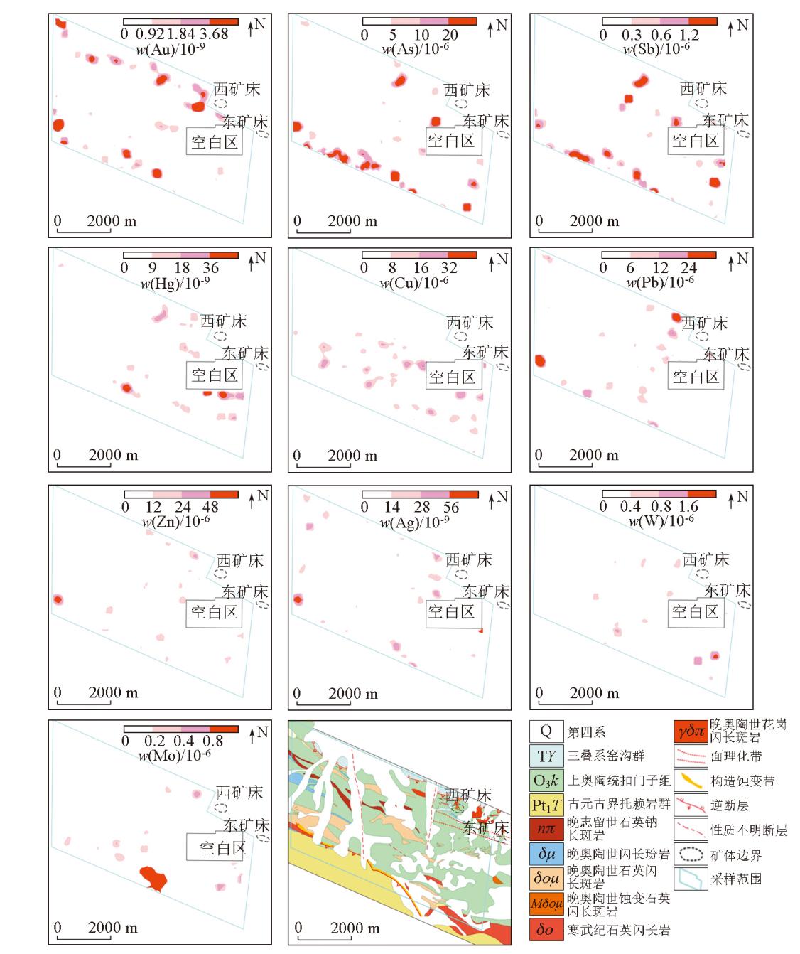 | 图5 松树南沟矿区土壤元素异常分布 |