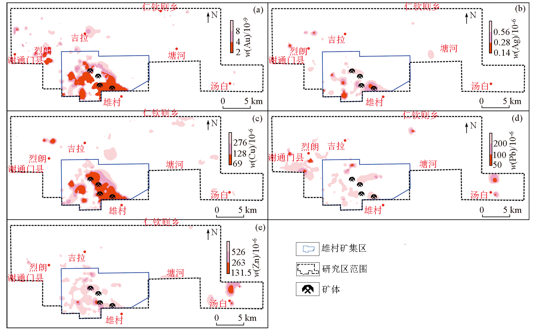 | 图3 研究区水系沉积物元素异常分布 |