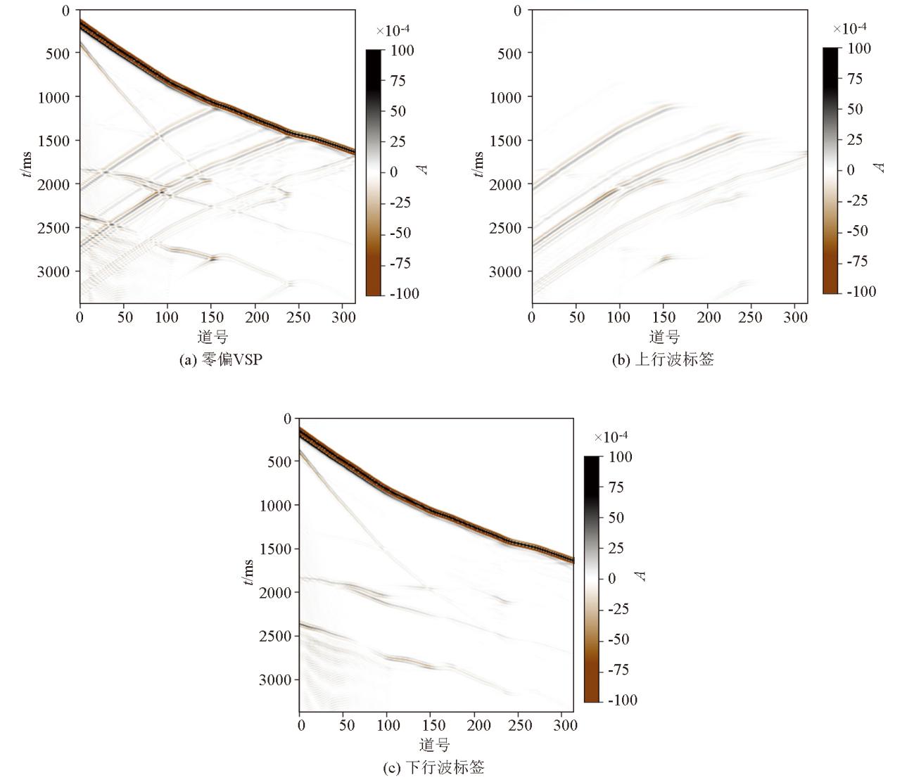 | 图7 M1零井源距合成VSP数据及上、下行波标签 |