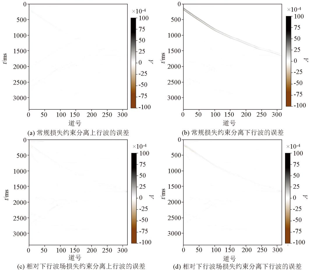 | 图9 常规损失和加入相对下行波场损失Unet波场分离结果与标签的残差对比 |