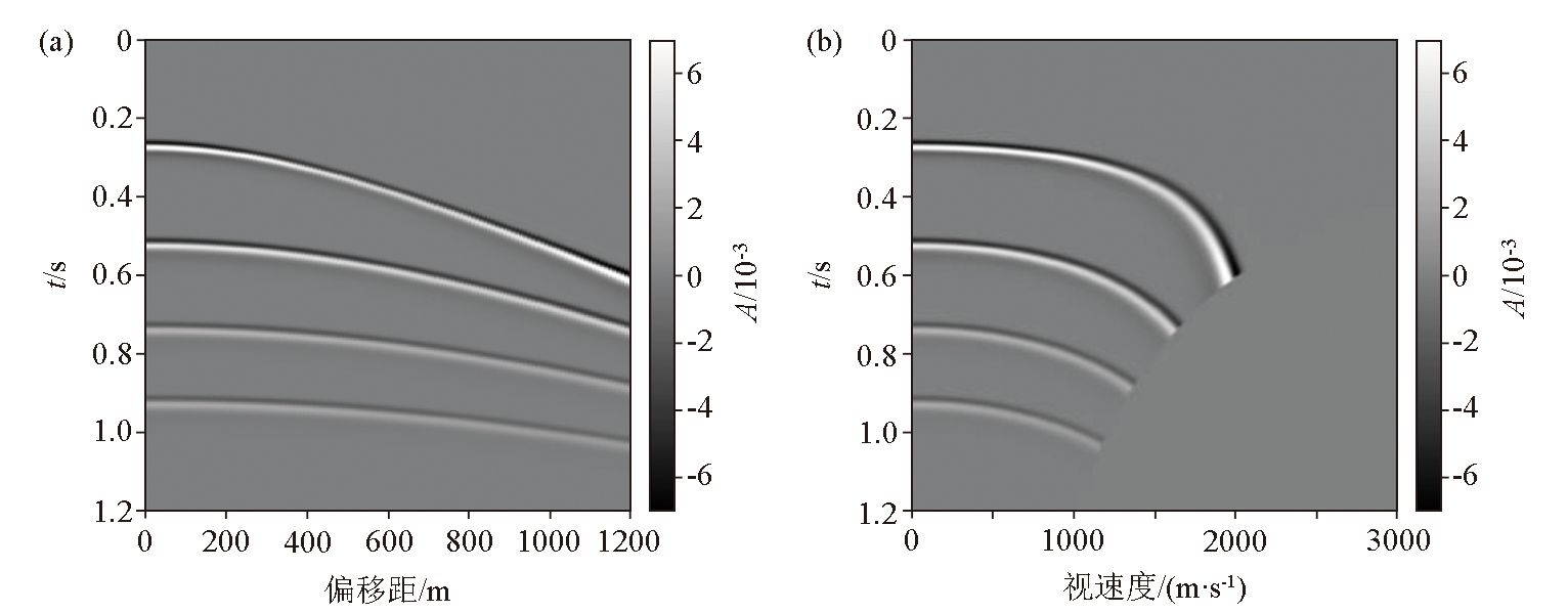 | 图5 合成的X-T域(a)与转换到R-T域(b)的CMP道集 |