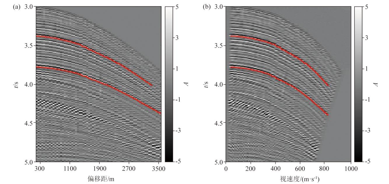 | 图8 实际的X-T域(a)与转换到R-T域(b)的CMP道集 |