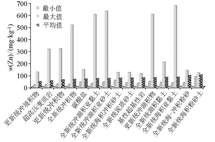 | 图3 江苏主要成土母质土壤Zn分布丰度对比 |